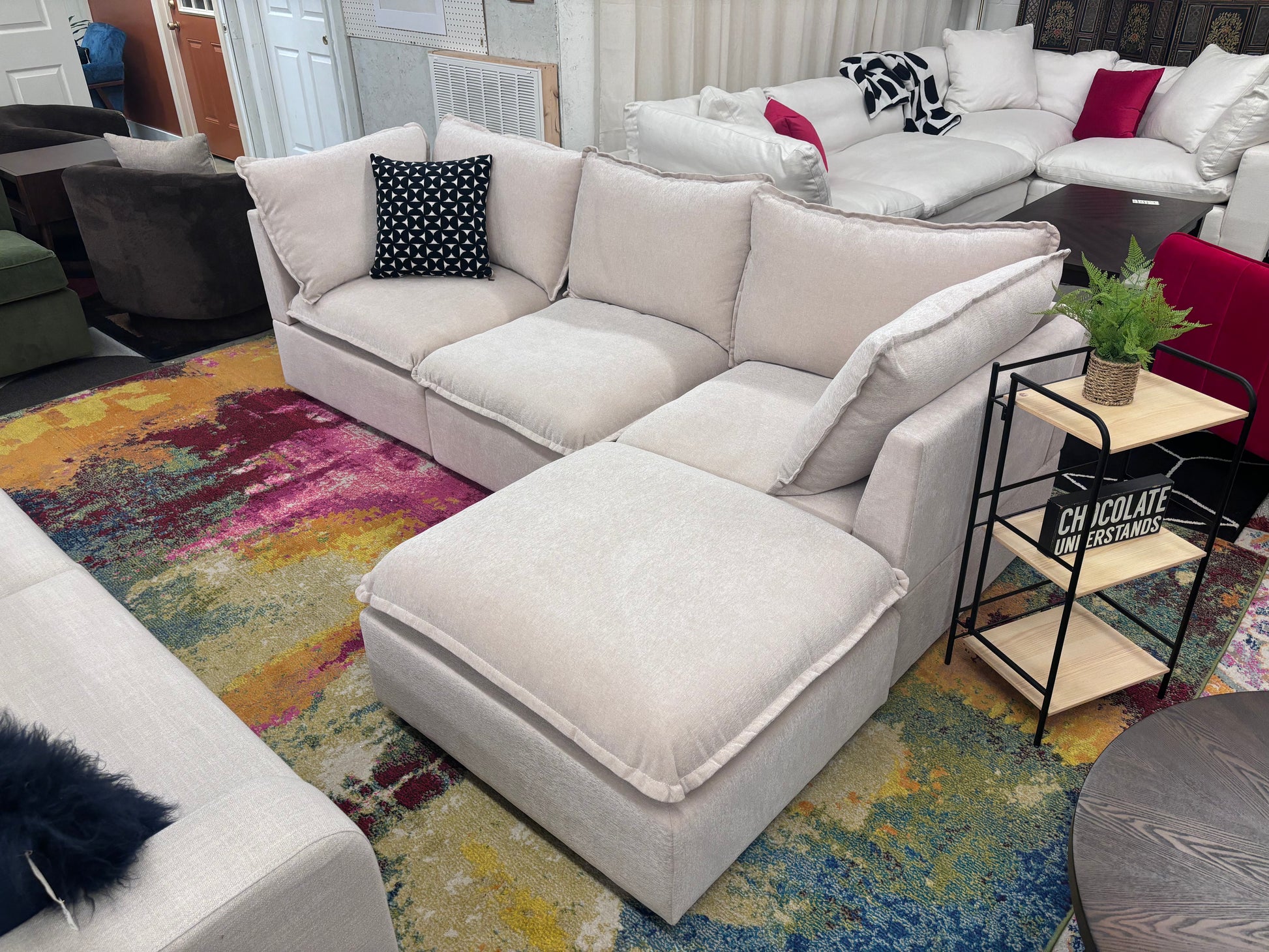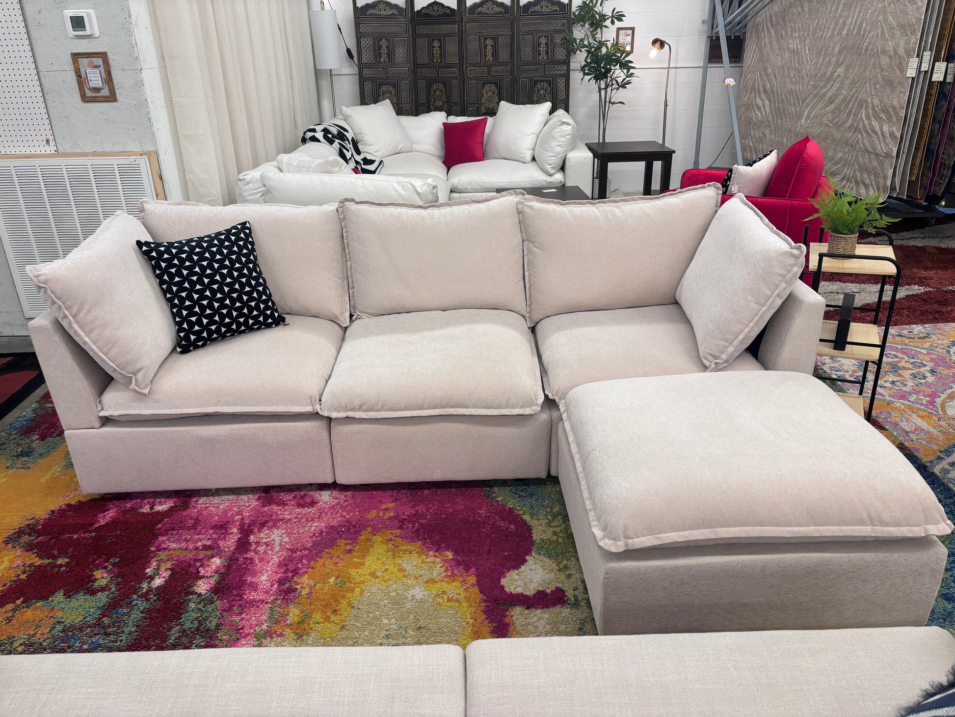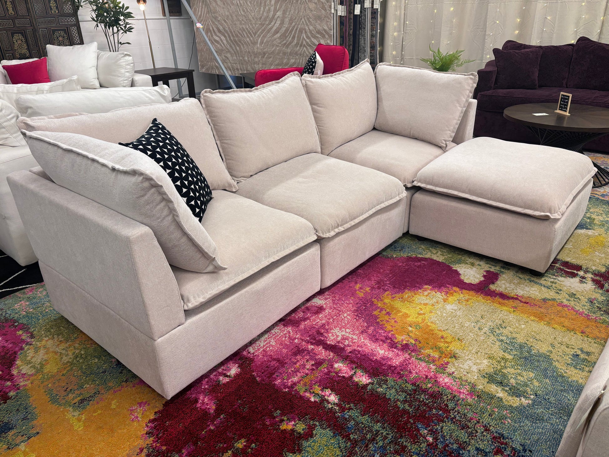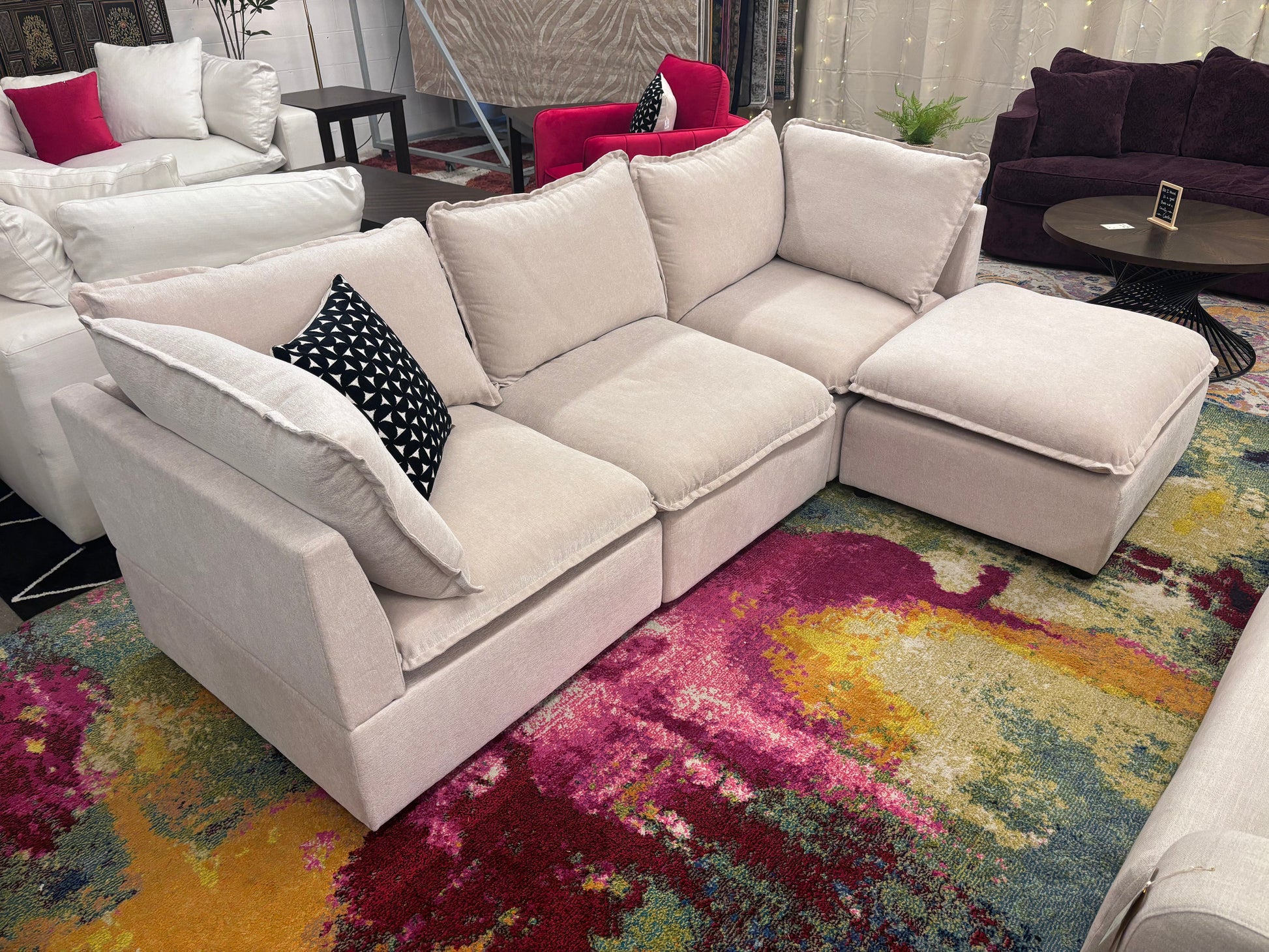Cream Chenille Nova Modular 4 Piece Sofa + Ottoman