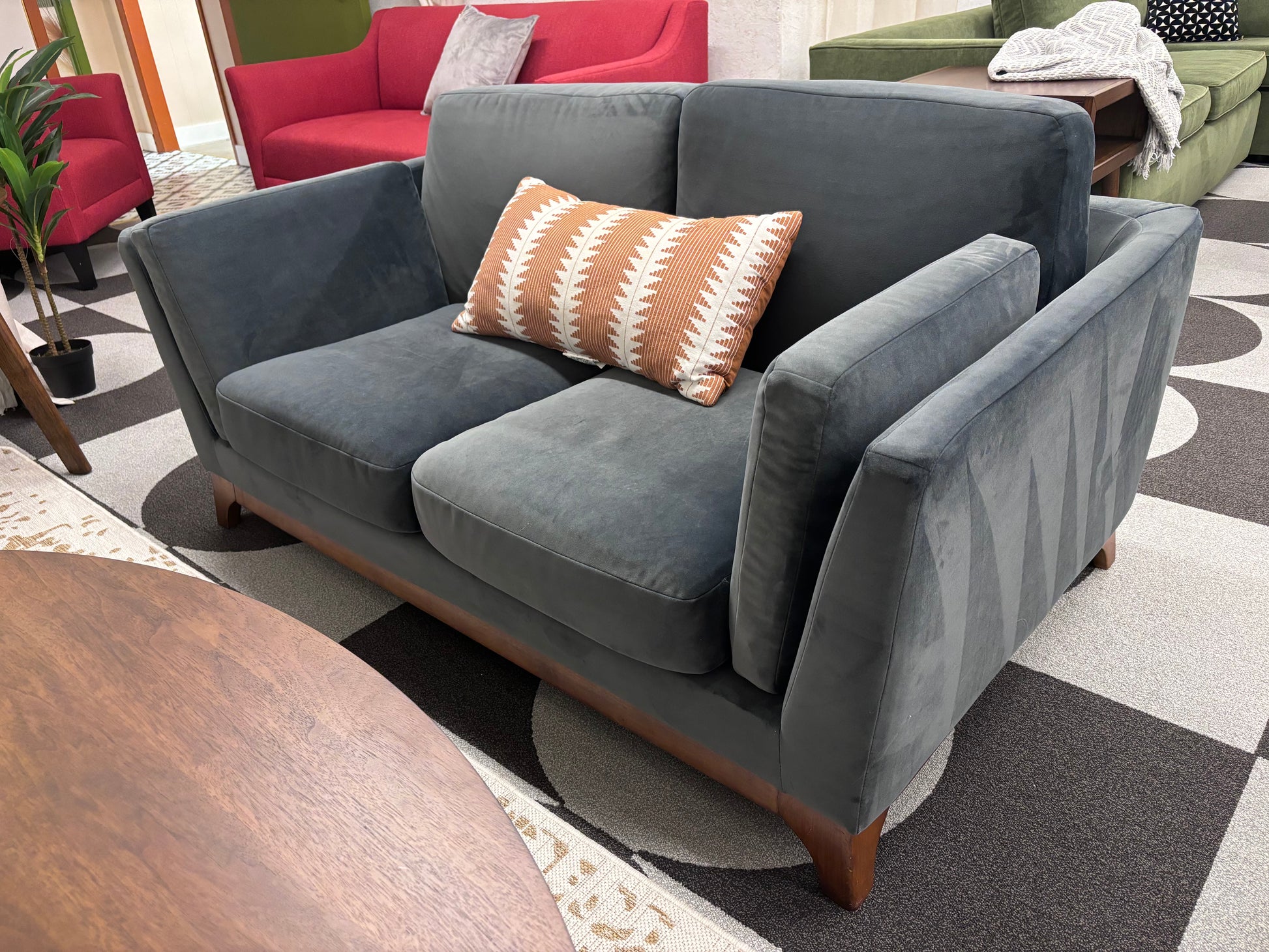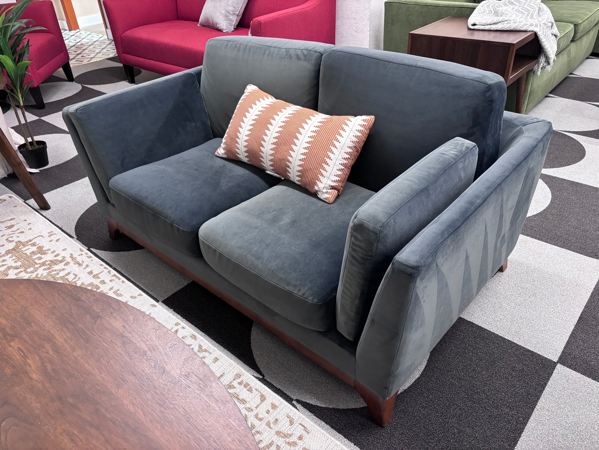 An MCM style loveseat that would be perfect for any cozy nook in your home.