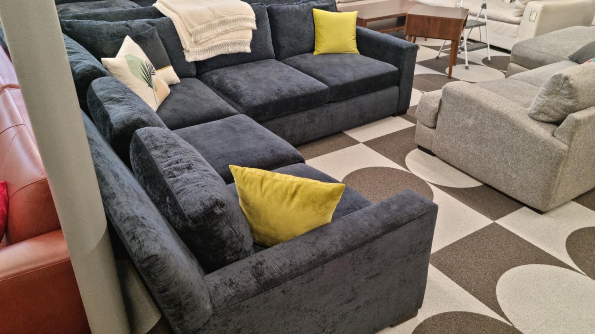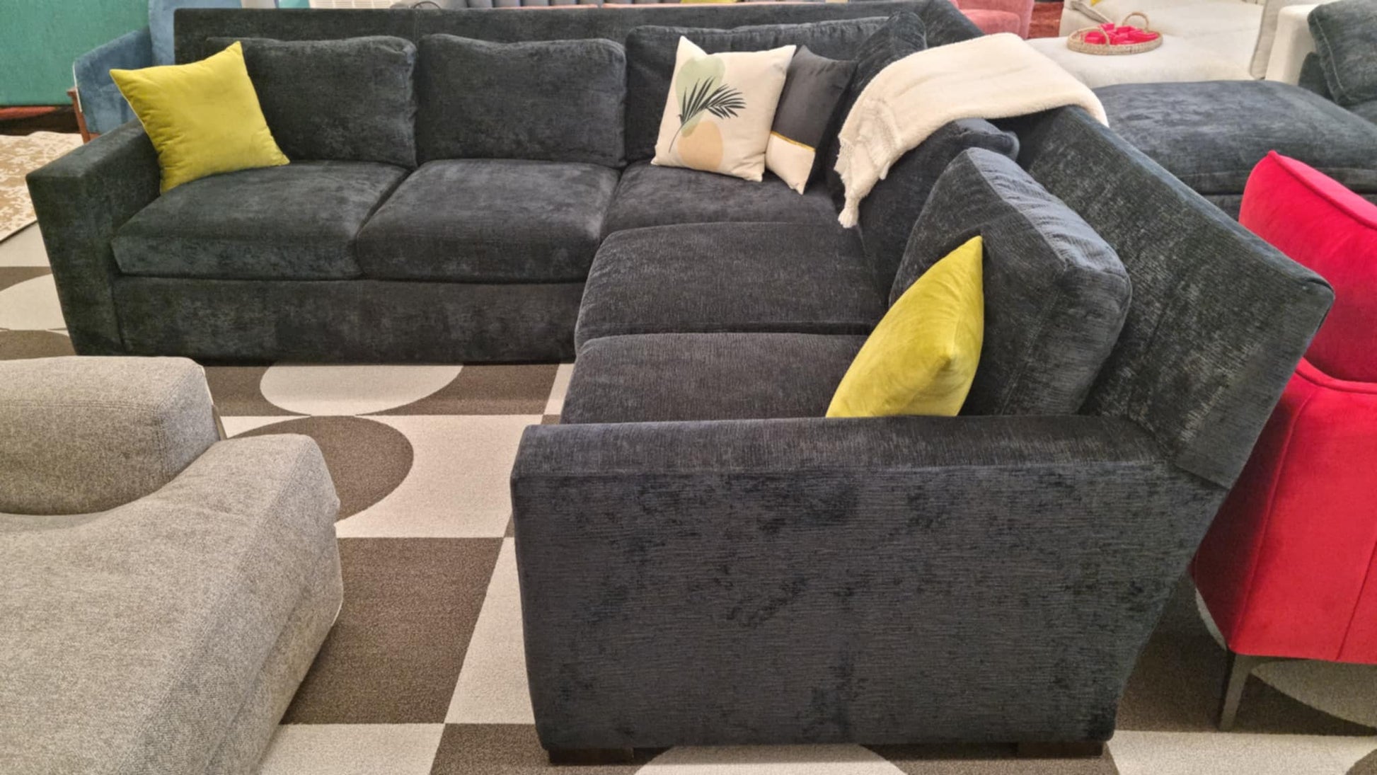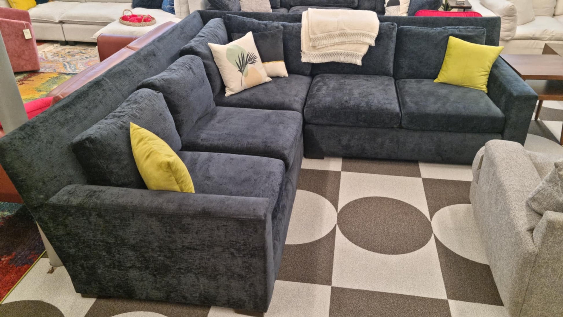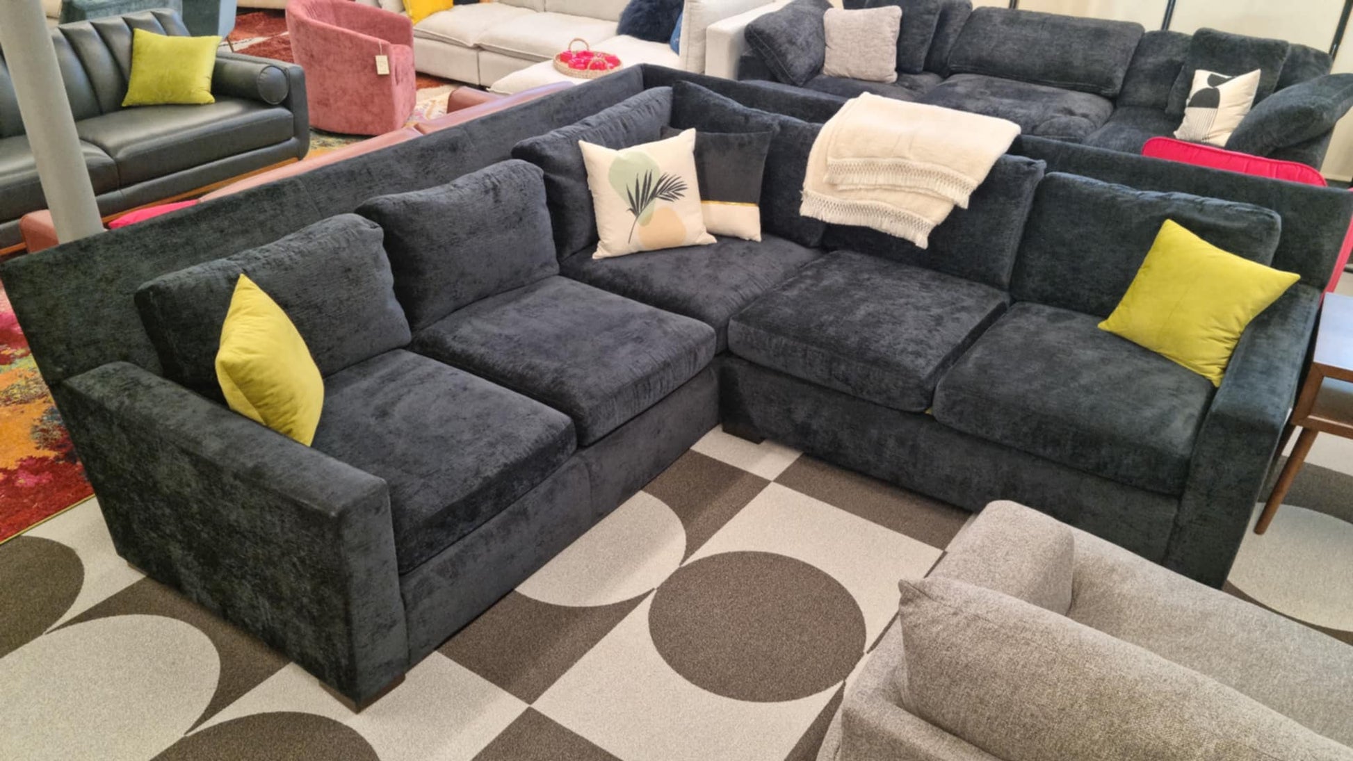 Rich and Regal with its velvety Indigo Black fabric- this custom Sprintz corner sectional is built to last a lifetime and to be the stunner centerpiece in your home.
