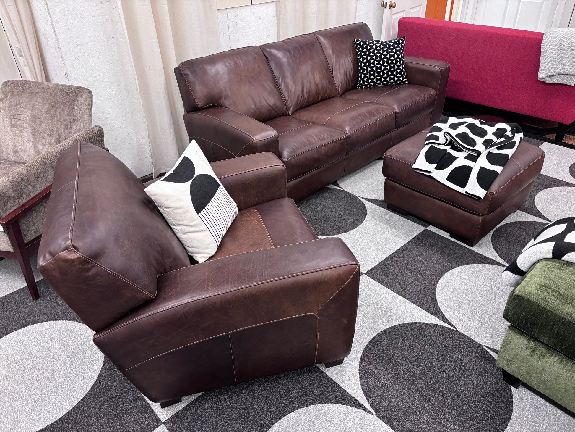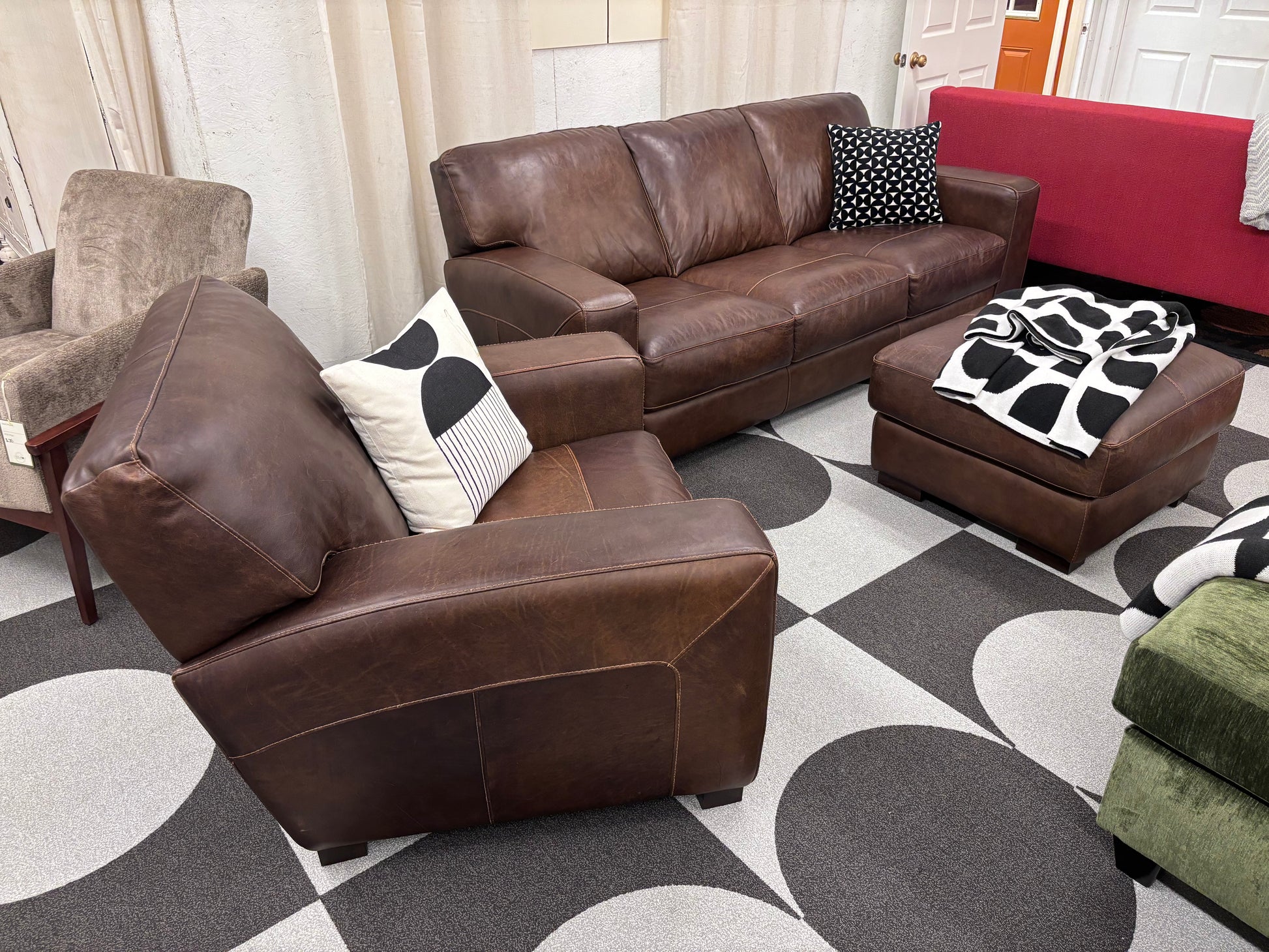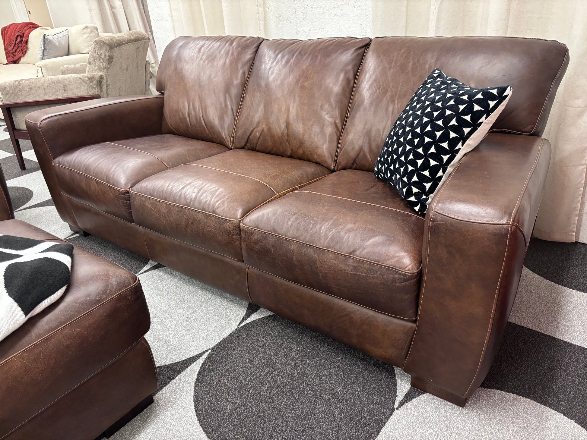 Italian Leather Soft Line Sofa & Ottoman NO CHAIR
