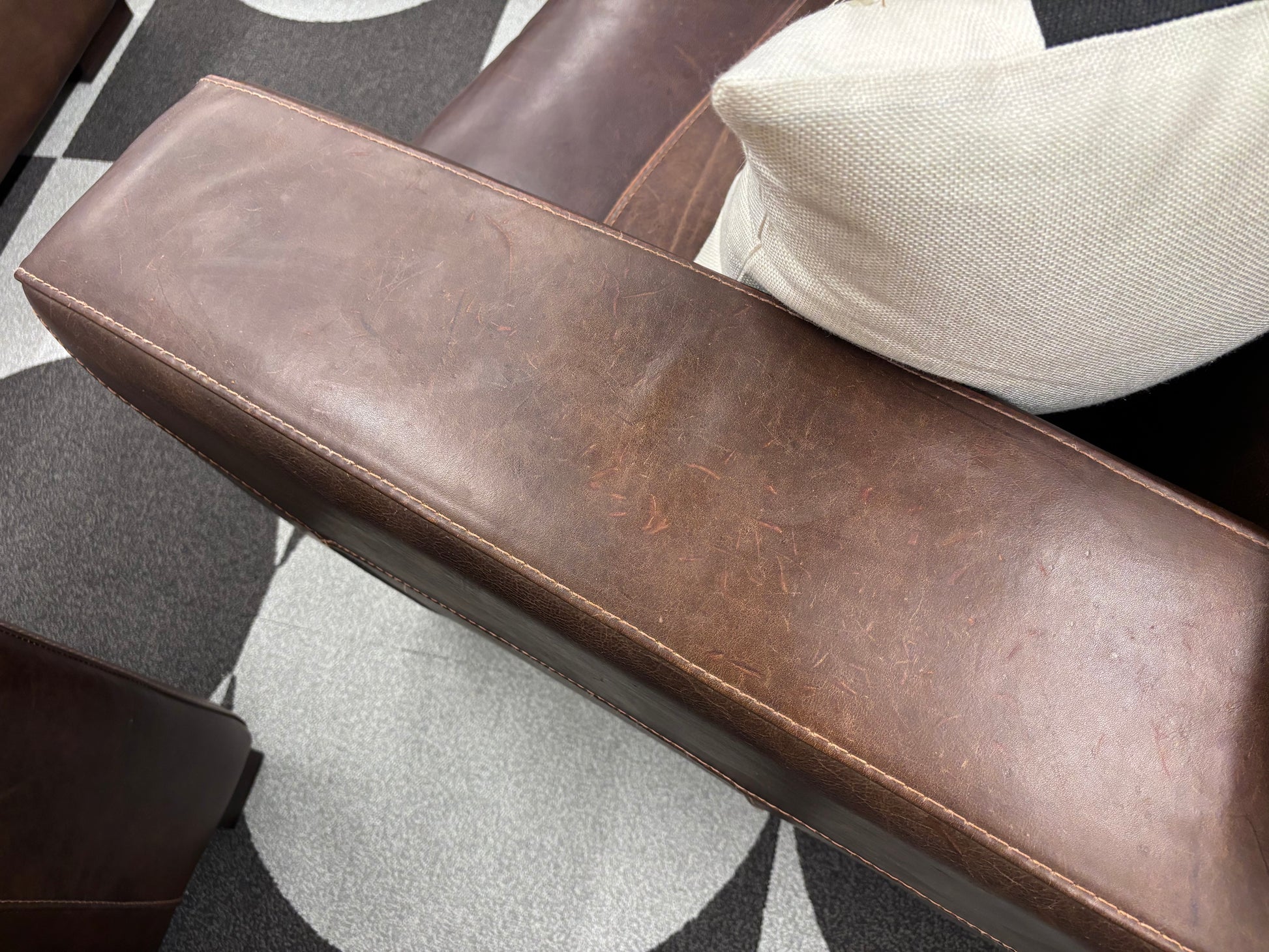 (Chair has sold) High quality Full Grain leather, this set is beautiful inn everyway and built to last a lifetime.