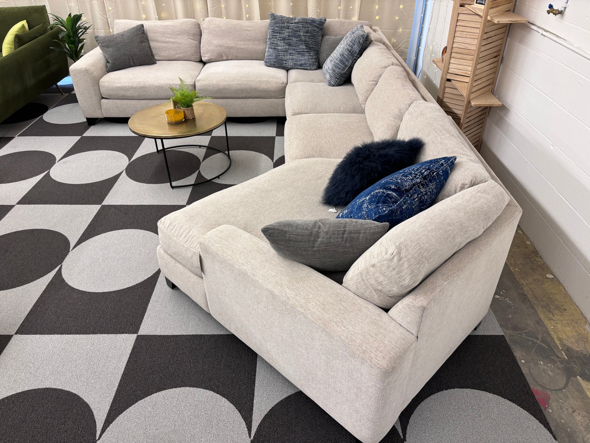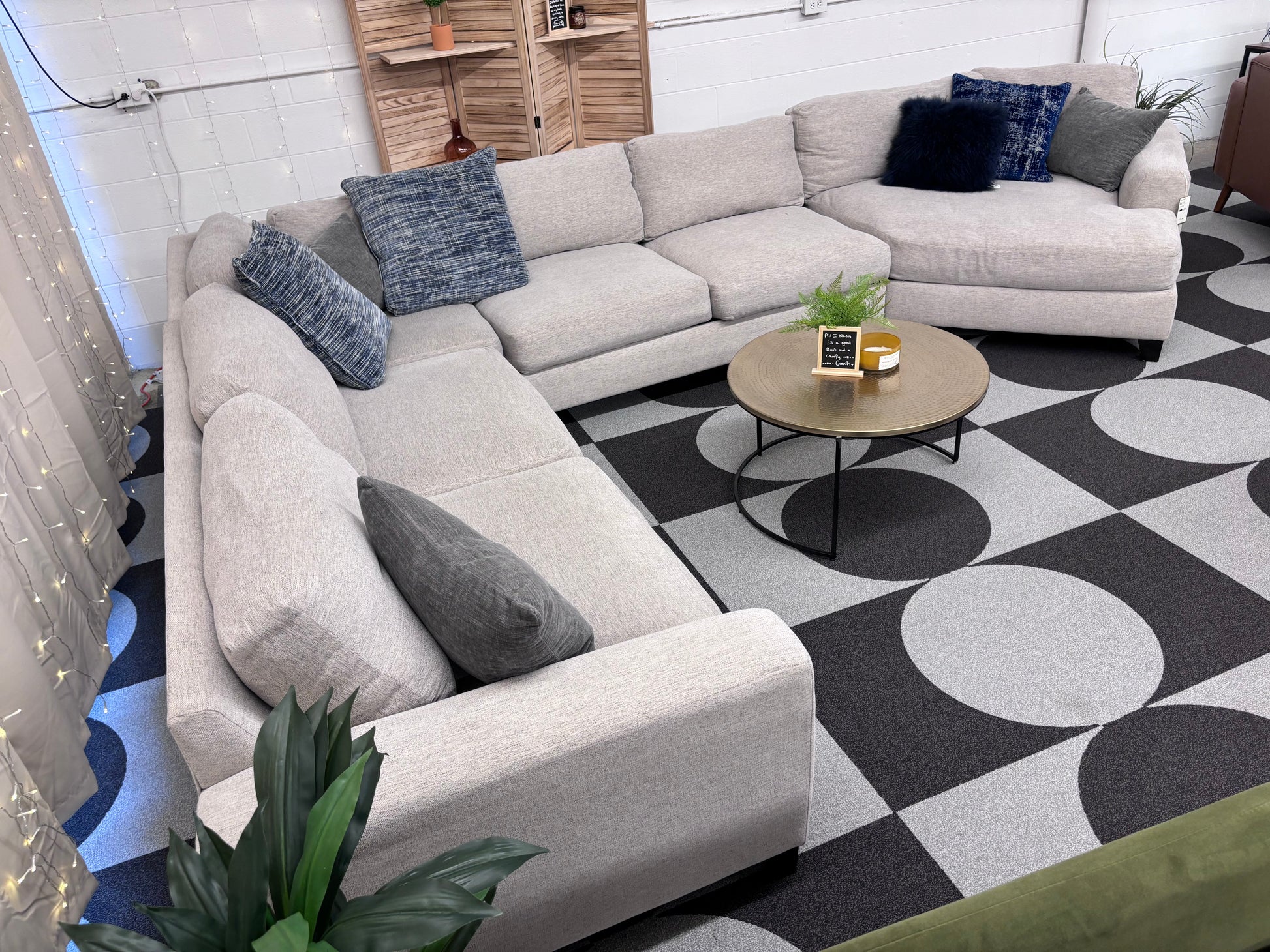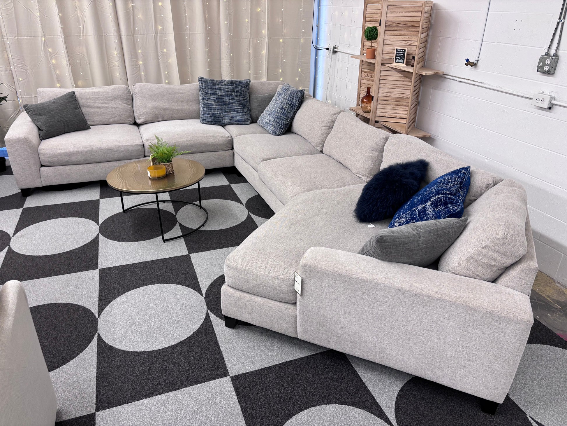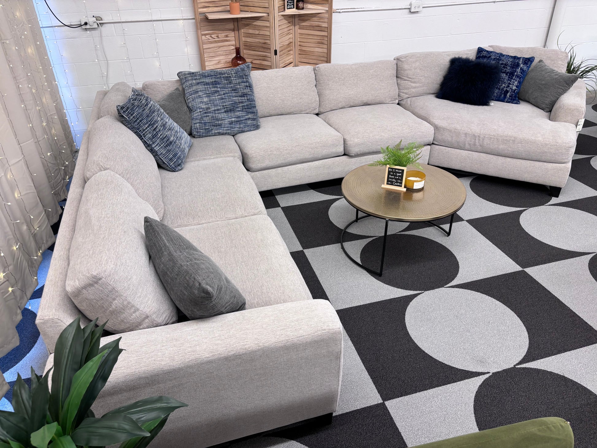 Grand is size, seating and comfort. This Haverty's cuddler sectional is all about entertaining a big crowd without feeling stuffy, instead- everyone can relax in modern style.